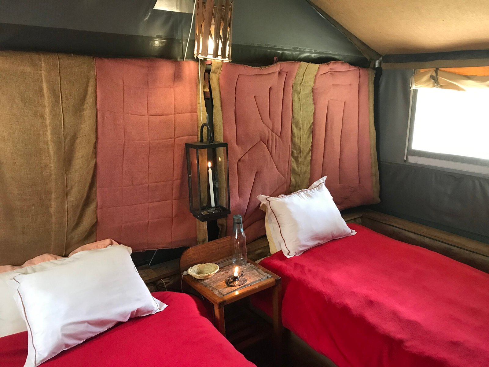 Disfruta de una experiencia única en una tienda de campaña ecológica con cama doble sobre base de adobe